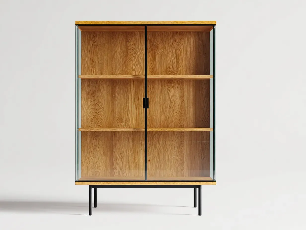 Il tavolo è realizzato in legno con finitura naturale. Il piano presenta una superficie liscia e uniforme, mentre la base è composta da elementi verticali ravvicinati che garantiscono solidità strutturale e continuità estetica.